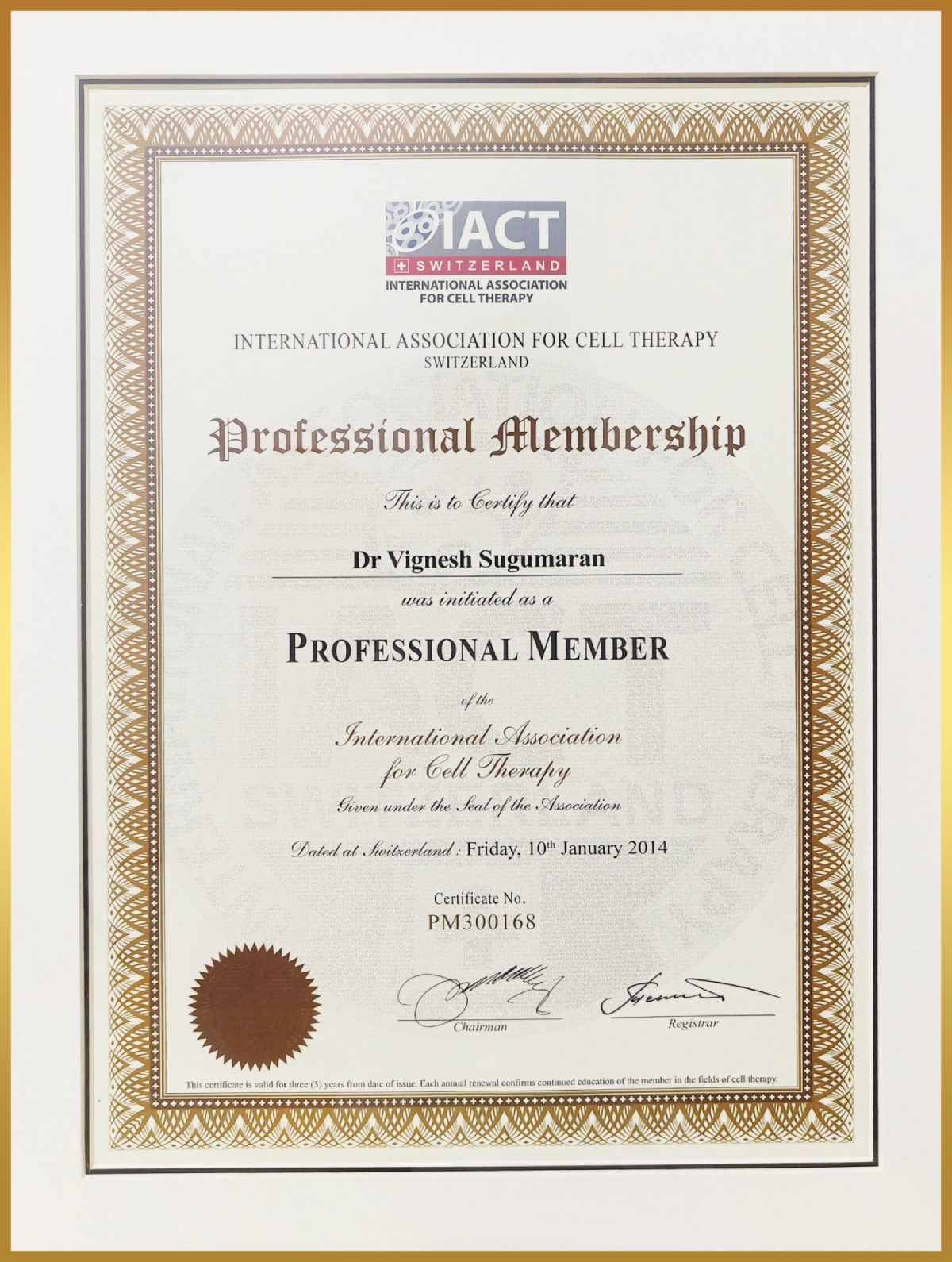 PROFESSIONAL CERTIFICATE OF IACT SWITZERLAND