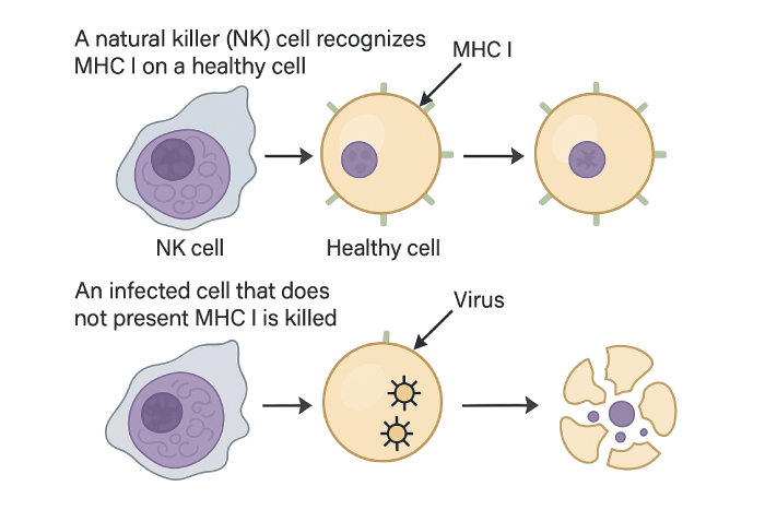 Natural Killer (NK) cells are a type of lymphocyte in the immune system that play a critical role in identifying and destroying abnormal cells, such as virus-infected or cancerous cells, without prior sensitization. They are a key component of innate immunity.