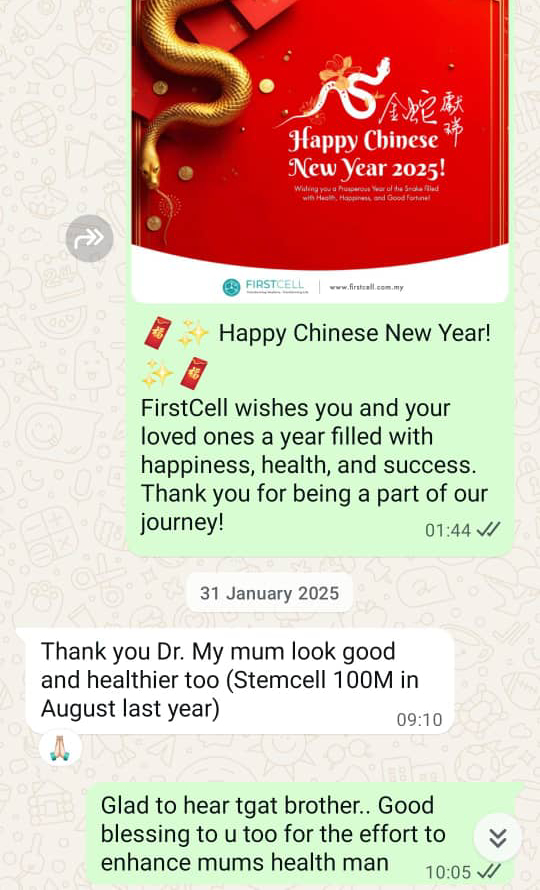 My mother had been diagnosed with Type 2 diabetes and was experiencing weight loss and frequent urination. She had stem cell therapy with Dr. Vignesh at Firstcell Malaysia. Within a month, we observed noticeable improvements in her overall health. Thank you Firstcell team for their excellent care and support.